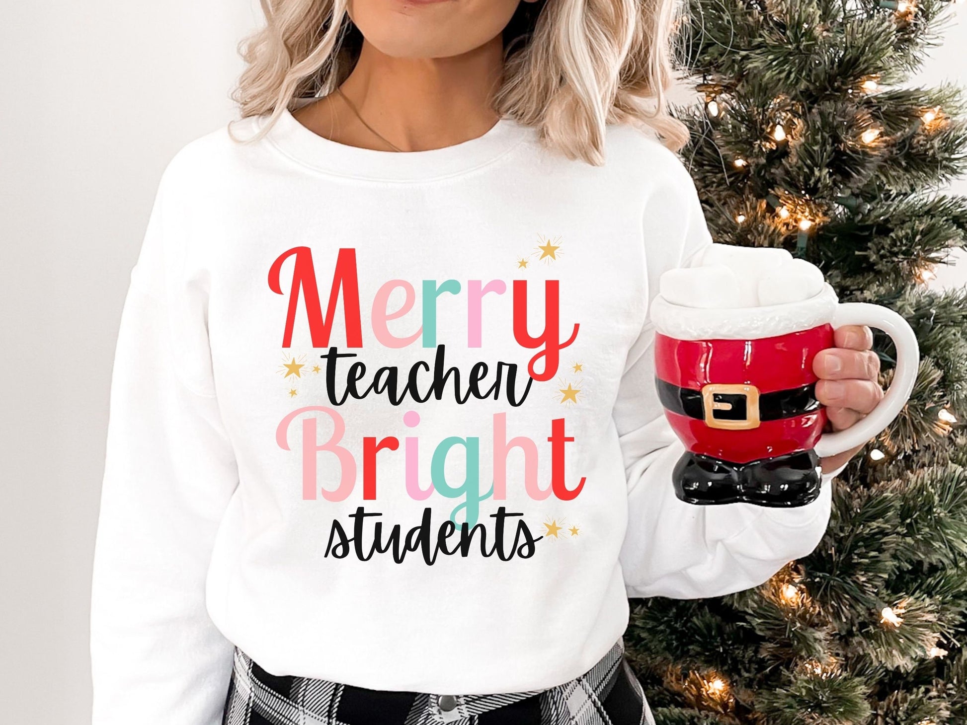 Merry Teacher Bright Students Christmas Sweatshirt, Funny Teacher Student Sweatshirt, Christmas School Sweatshirt, Teacher Christmas Gift