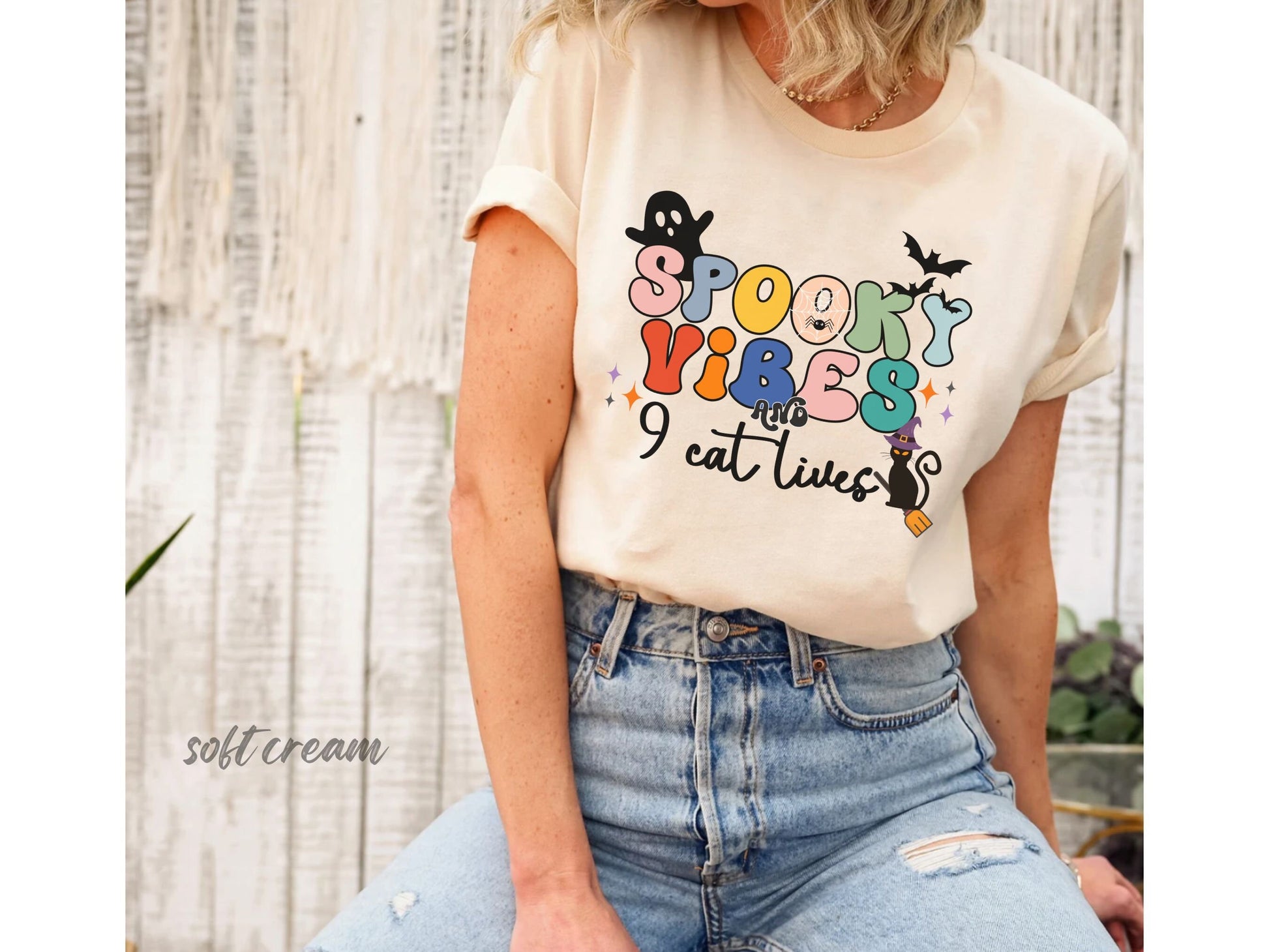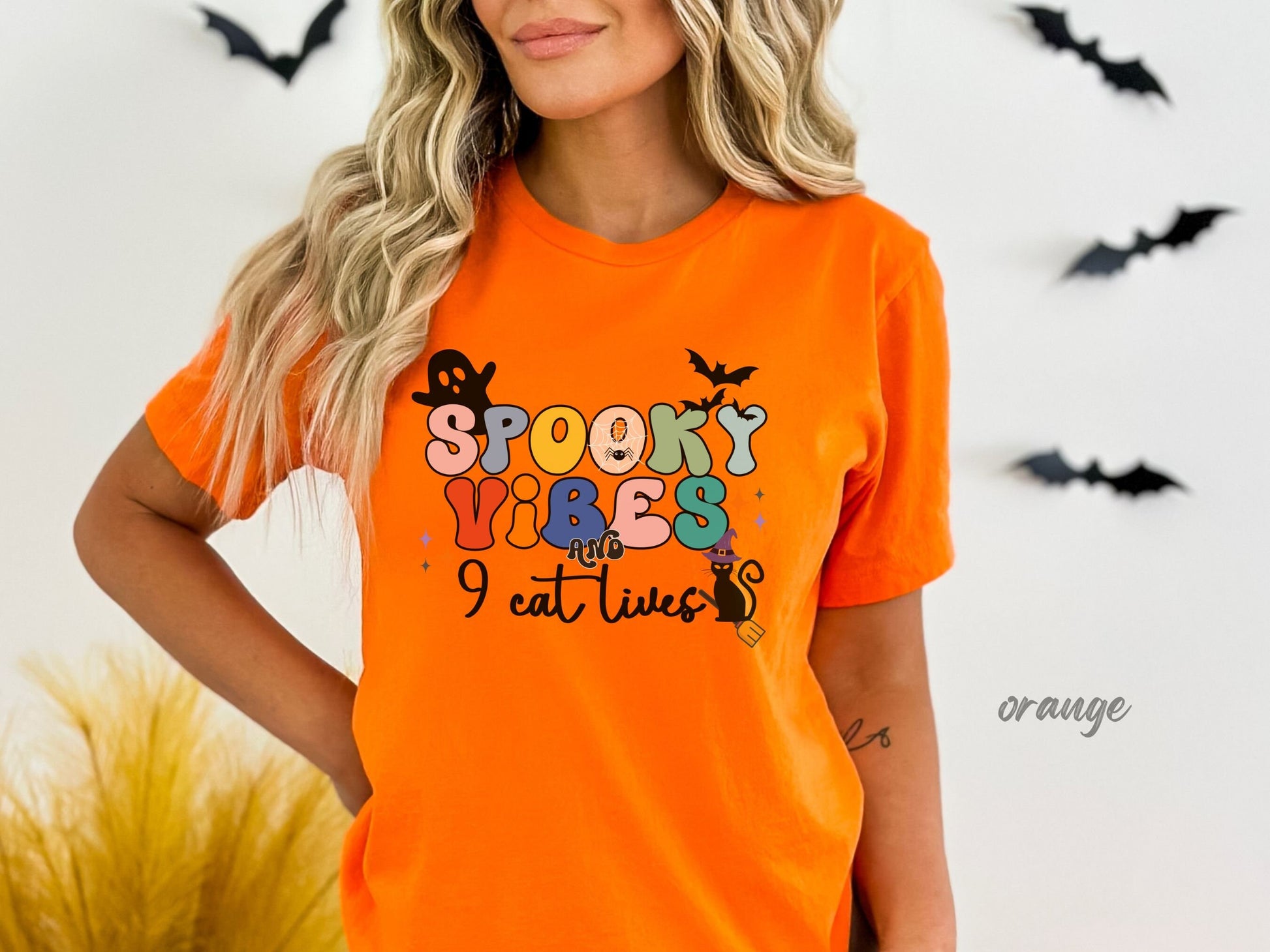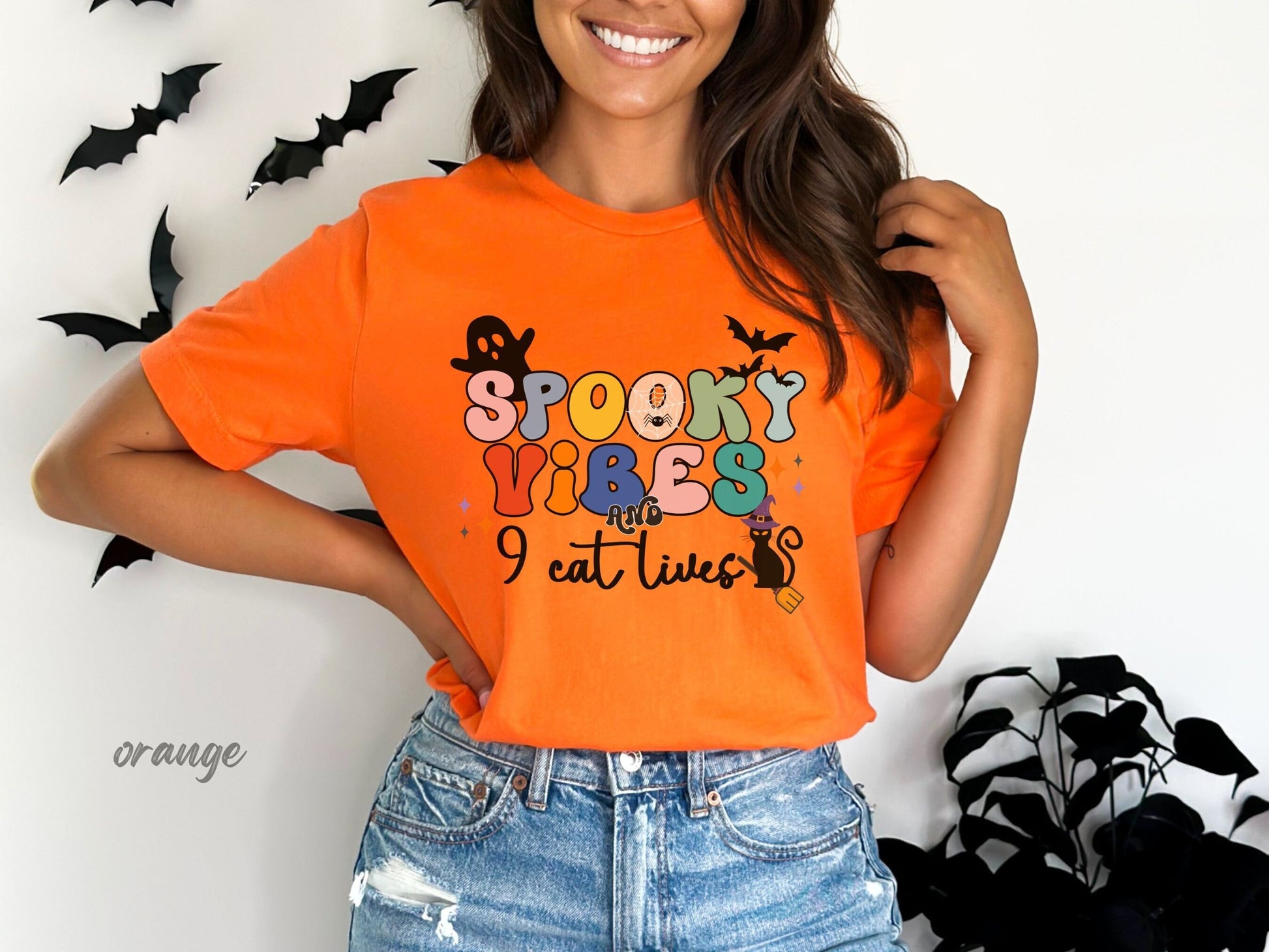 Spooky Vibes & 9 Cat Lives Tshirt | Funny Halloween Tshirt | Spooky Vibes Only Shirt | Halloween Women's Shirt | Fall Shirt Halloween Party