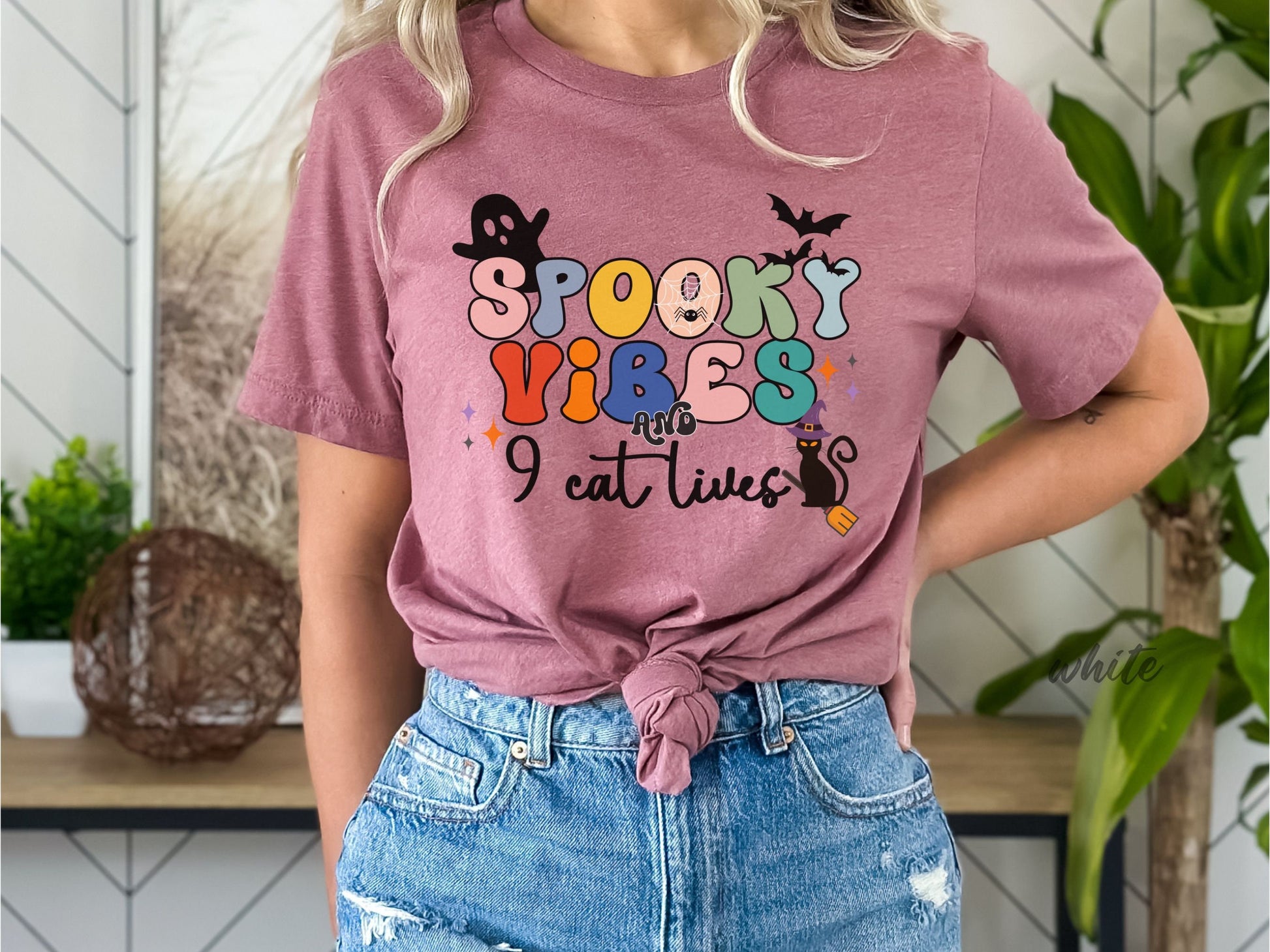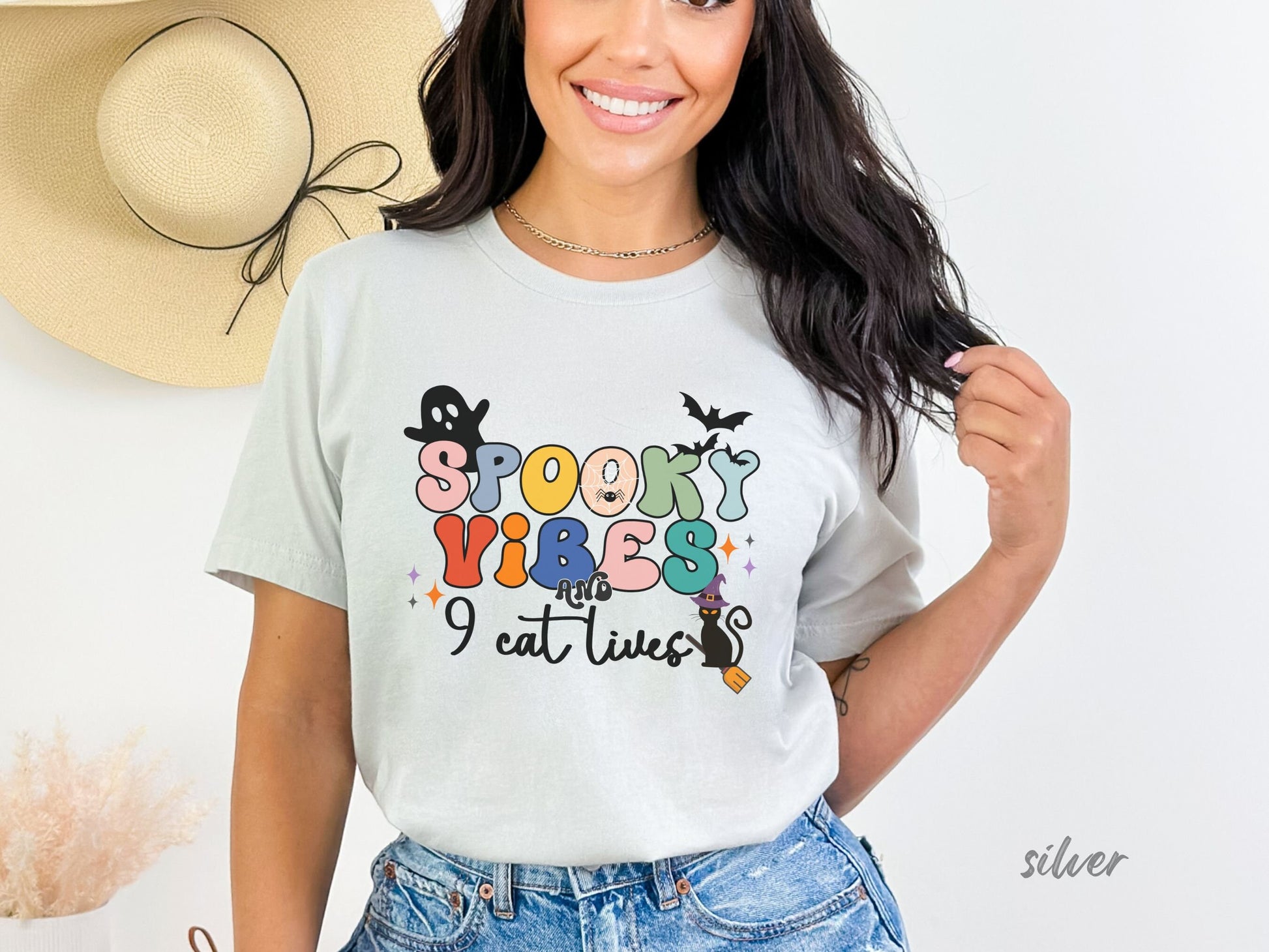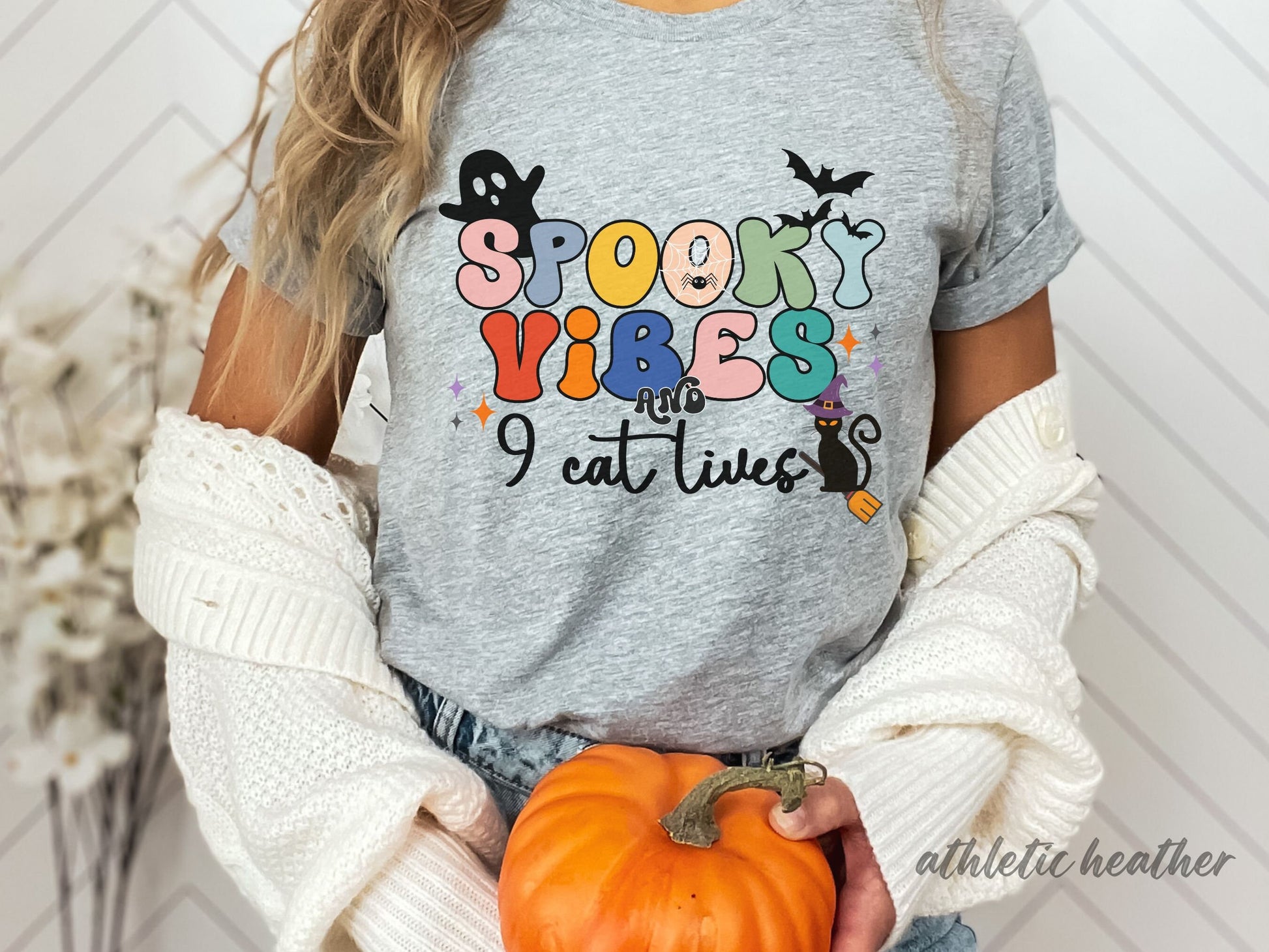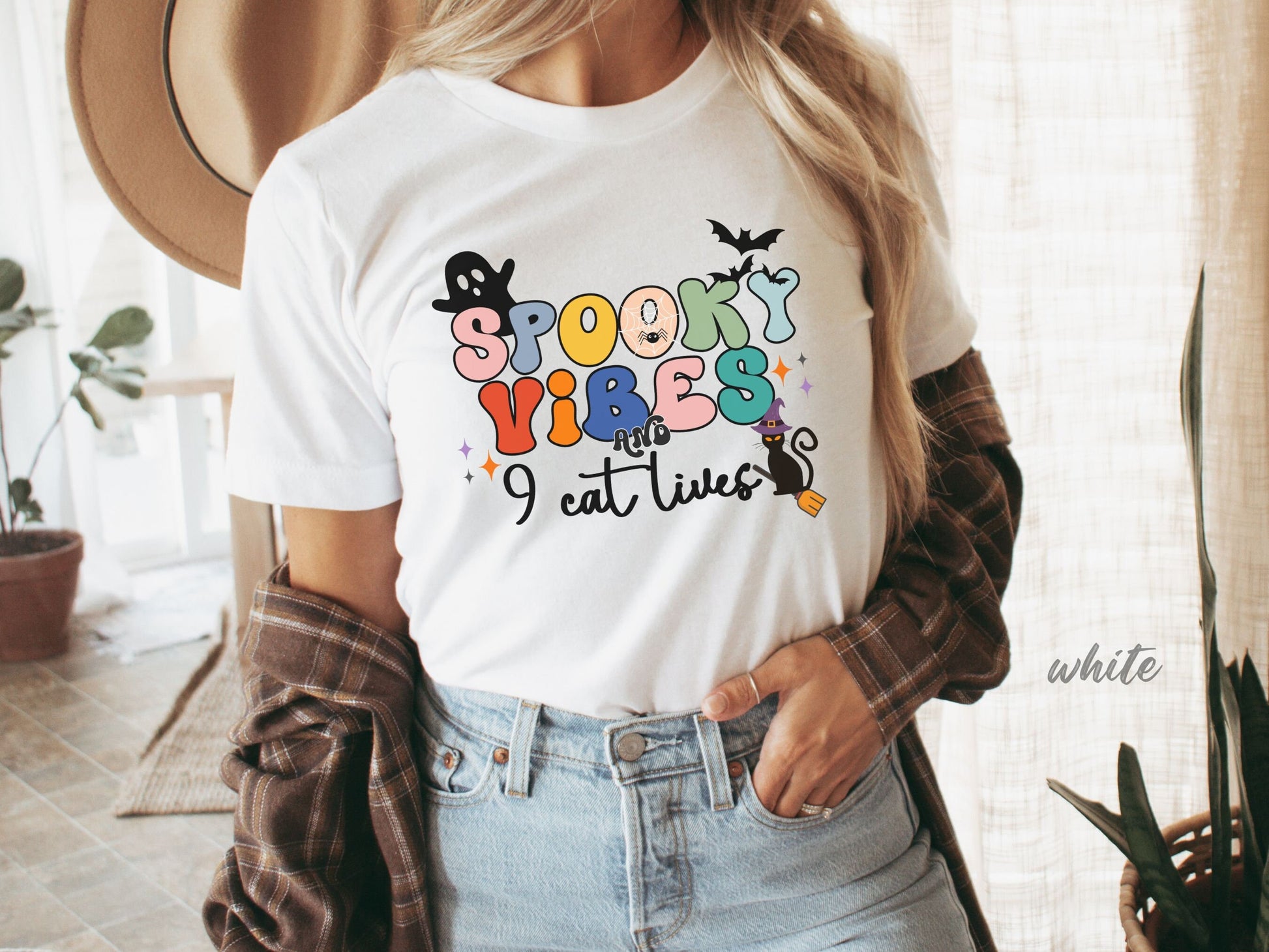 Spooky Vibes & 9 Cat Lives Tshirt | Funny Halloween Tshirt | Spooky Vibes Only Shirt | Halloween Women's Shirt | Fall Shirt Halloween Party