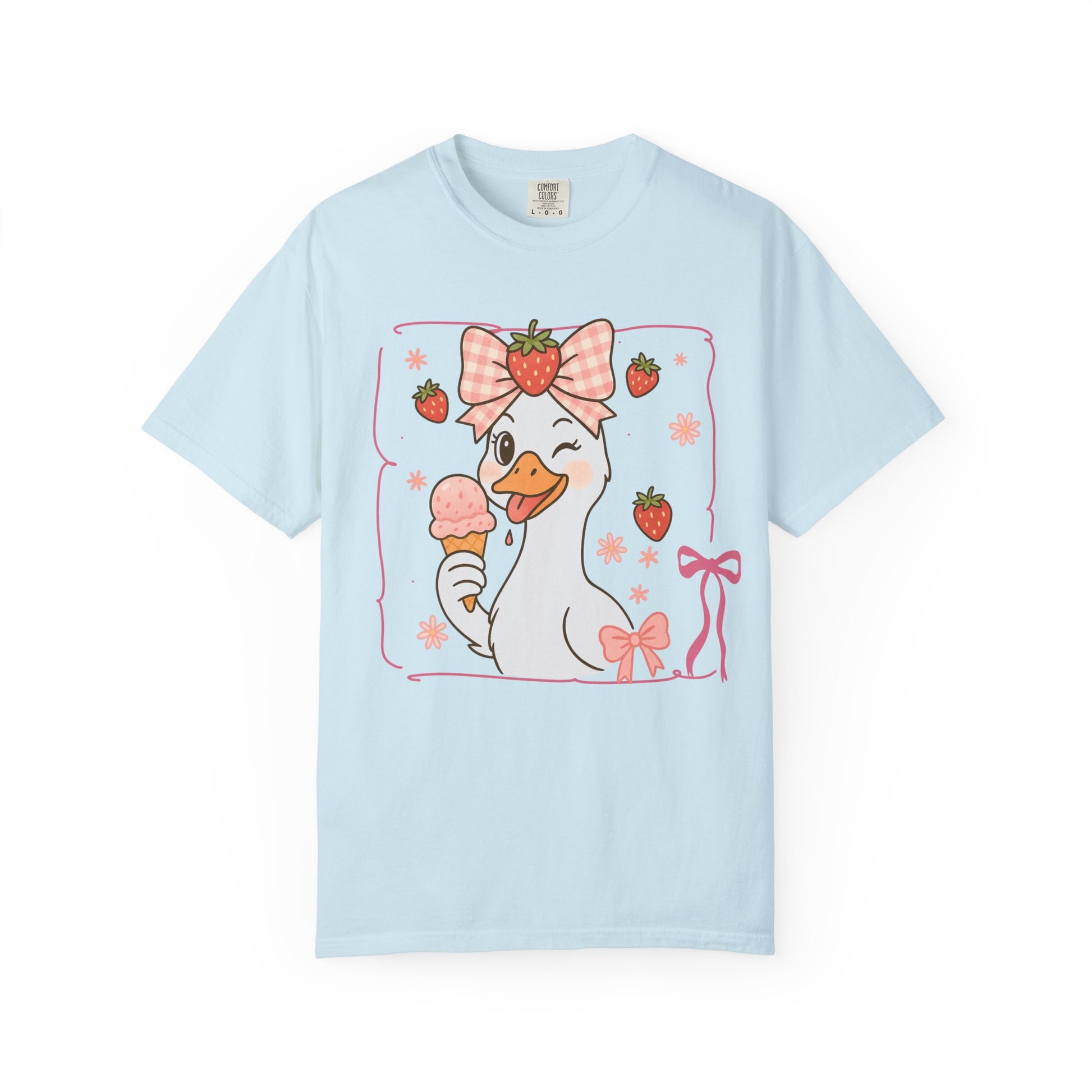 Strawberry Goose Eating Ice Cream Comfort Colors T-Shirt